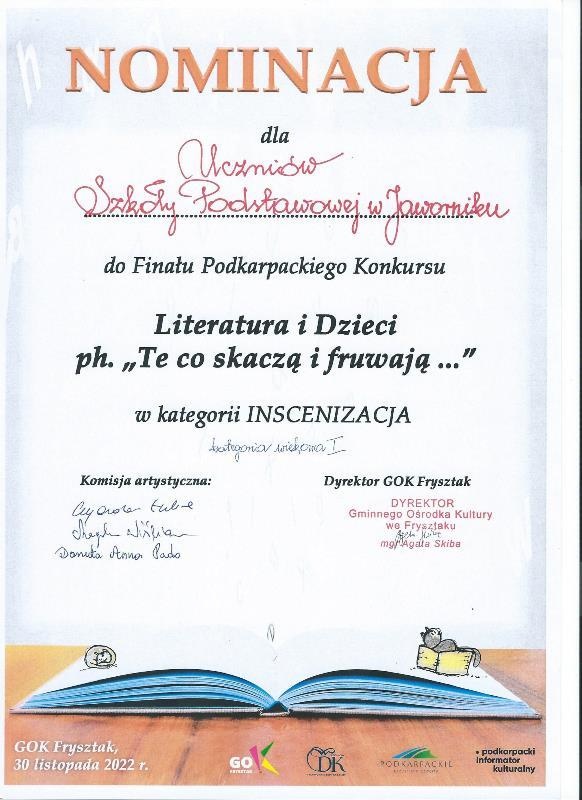 30 listopada w Gminnym Ośrodku Kultury we Frysztaku odbyły się eliminacje rejonowe w ramach Podkarpackiego Konkursu Literatura i Dzieci - Te co skaczą i fruwają.