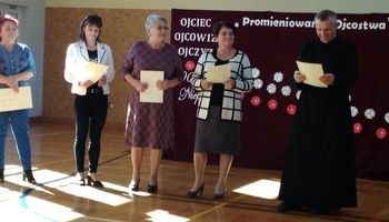 Słowa podziękowania kierujemy również do ks. Adama Kaczora, do Pani Barbary Pałki, Pani Agnieszki Cynar, Pani Renaty Kozdraś za uświetnienie swoją obecnością i za aktywny udział w pracy jury. Bardzo serdecznie dziękujemy również Pani Marii Chuchli za uświetnienie swoją obecnością, w pracy jury i za wieloletnie wsparcie finansowe naszego szkolnego przedsięwzięcia. Pan Janusz Rak to kolejna osoba, która corocznie pomaga nam przeprowadzić konkurs „Jan Paweł II w poezji i w piosence.”