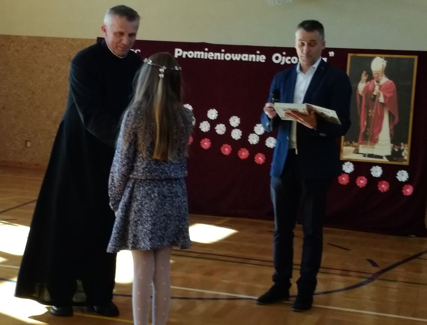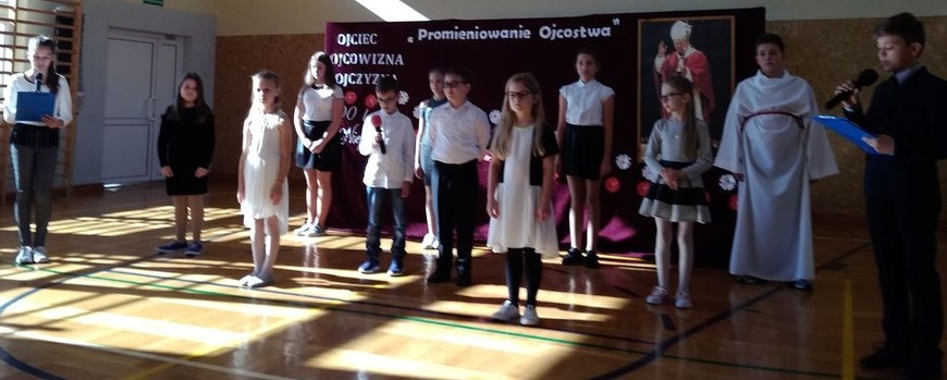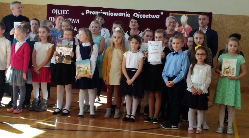 W tym roku w konkursie udział wzięli uczniowie z 8 szkół naszej gminy. Recytując wiersze i śpiewając piosenki, dzieci pomagały nam przypomnieć i poznać życie Karola Wojtyły – Św. Jana Pawła II.