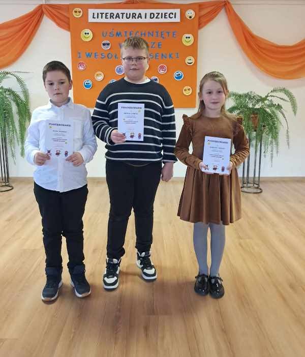 Gratulujemy chłopcom pięknej recytacji, Karolinie gratulujemy wygranej i życzymy dalszych sukcesów.