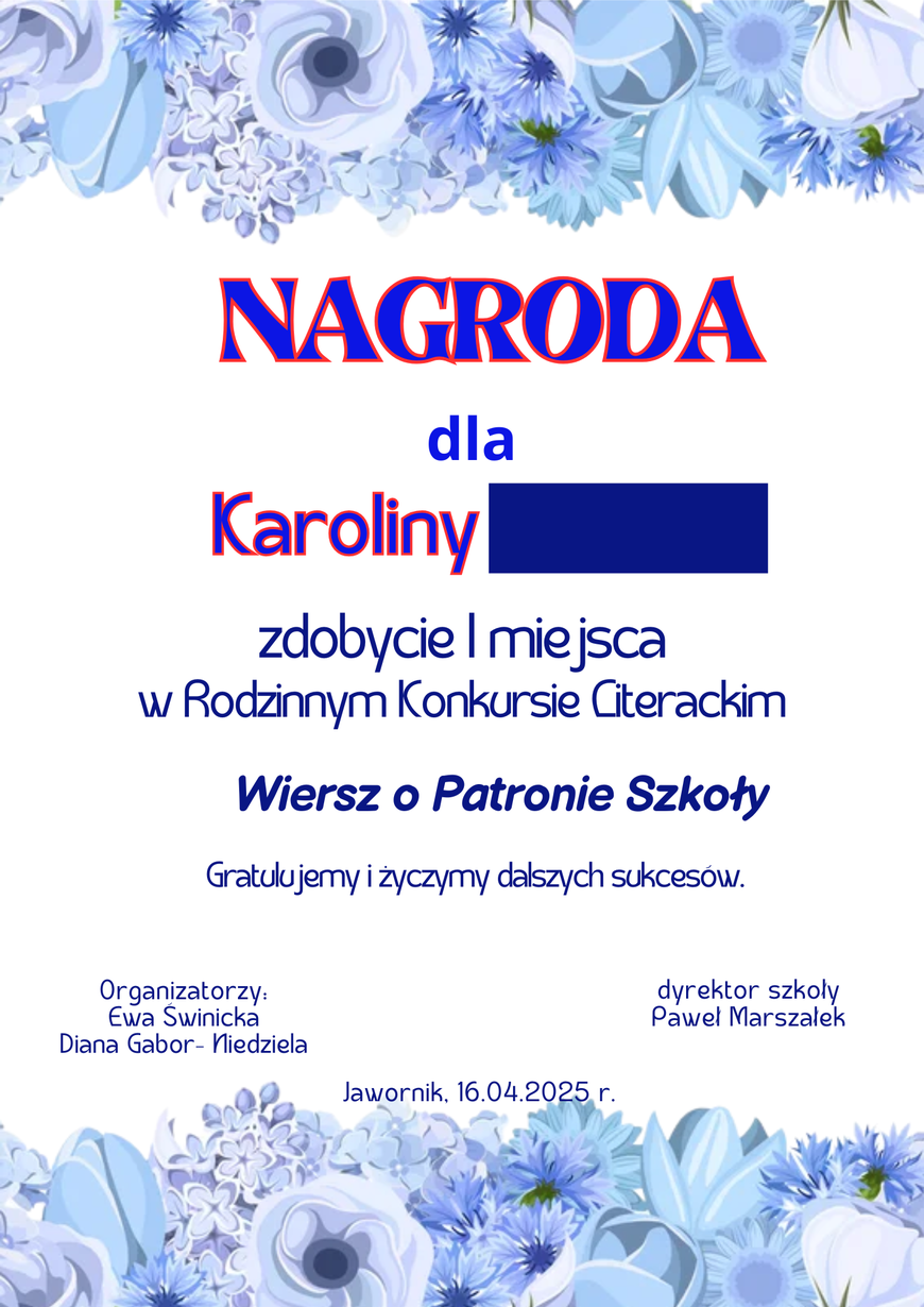 Gratulujemy zwycięzcom, życzymy dalszych sukcesów.